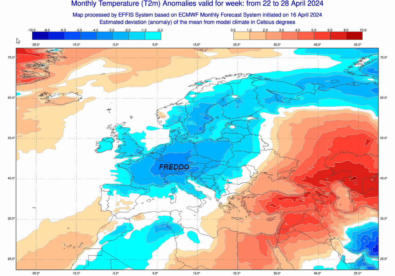 Passiamo ora al lasso temporale compreso tra il 22 e il 28 aprile. Iniziamo con le ANOMALIE TERMICHE: