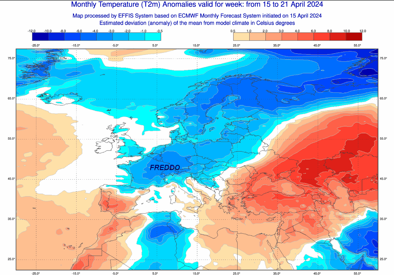 Una cosa e certa: il tempo a scala europea ed italica non sarà monotono in questo frangente temporale. Iniziamo con le ANOMALIE TERMICHE previste fino a DOMENICA 21 APRILE: