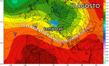 Un altro nucleo fresco atlantico tenderà a scorrere sull’Europa centrale: in questo suo movimento potrebbe lambire il nord Italia, dove le nuove correnti fresche non passerebbero inosservate. Difatti tra la sera di domenica e la giornata di lunedì 7 Agosto emerge una concreta possibilità di temporali localmente intensi, soprattutto il Nordest.