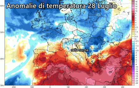 Tutti i centri di calcolo concordano con un deciso calo delle temperature negli ultimi giorni di Luglio, una tendenza presente ormai da giorni e sempre più insistente nelle simulazioni modellistiche.