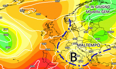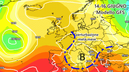 Tra 10 e 13 Giugno avremo a che fare prevalentemente con instabilità pomeridiana o serale, molto disorganizzata. Tra 14 e 16 Giugno, invece, potrebbe svilupparsi una depressione organizzata alimentata da aria fresca nord europea: questa perturbazione potrebbe danneggiare il tempo su gran parte d’Italia!