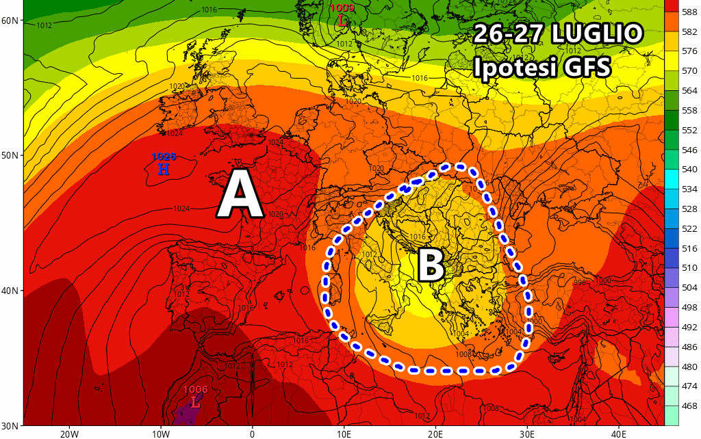Tra 26 e 27 Luglio questa massa d’aria fresca potrebbe clamorosamente isolarsi tra Italia e Balcani, generando tanta altra instabilità e tenendo a debita distanza il grande caldo.