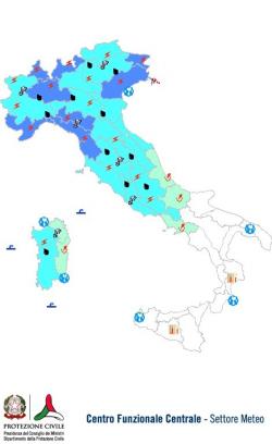 – sparse, anche a carattere di rovescio o temporale, su resto del Nord e della Toscana e su Marche settentrionali, Umbria, Lazio, settori occidentali di Sardegna ed Abruzzo e sulla Campania settentrionale, con quantitativi cumulati moderati o puntualmente elevati;