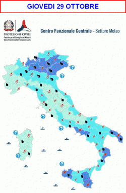 ALLERTA protezione civile per GIOVEDI 29 OTTOBRE