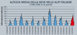 terzo valore medio dal 2002 al 2013, preceduto dal 2009 con 138 cm, dal 2004
