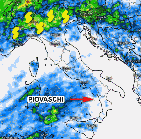 Questa invece è la sommatoria delle precipitazioni attese in Italia nell’arco di tutta la giornata di domani, lunedi 8 maggio: