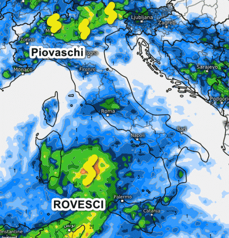 Rovesci o temporali si faranno vedere soprattutto nel pomeriggio odierno ed in serata indicativamente sui settori di pianura posti a nord del Po e sulle Alpi. A sud del Po e sulla Liguria fenomeni assenti.