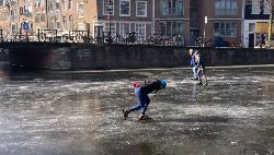 Amsterdam avvolta dal gelo : la gente pattina sui canali ghiacciati