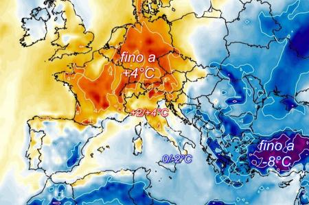Qui sotto vi mostriamo le anomalie di temperatura a 2 metri calcolate dal modello americano gfs per giovedì 10 marzo: