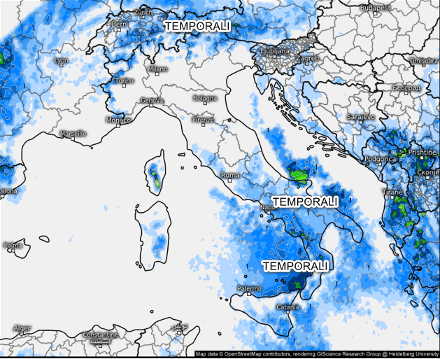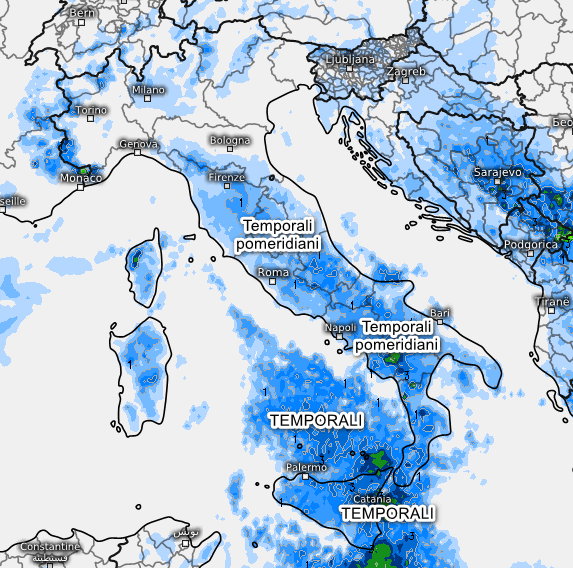 Ancora rischio di temporali al sud, specie su Sicilia settentrionale, Calabria, Lucania e Puglia. Fenomeni presenti soprattutto al mattino, mentre nel pomeriggio dovrebbe subentrare un miglioramento. Su tutte le altre regioni non dovrebbero esserci temporali, a parte forse qualche isolato fenomeno pomeridiano in prossimità delle Alpi centro-orientali ed Appennino centrale, in attenuazione in serata.