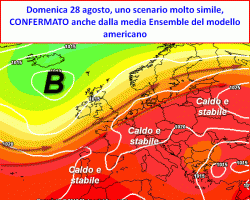 americano, l’anticiclone (questa volta dalle ascendenze oceaniche) riprenderebbe il pieno controllo della situazione, concludendo agosto, il mese dell’estate per antonomasia, sotto condizioni d’alta pressione e caldo.