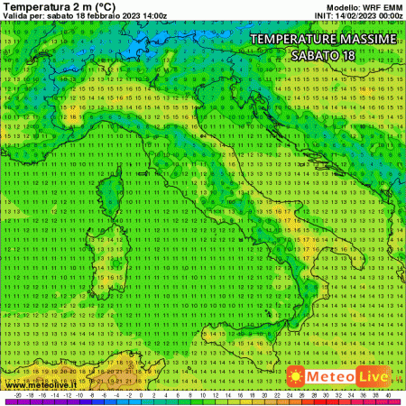 Ci aspettiamo temperature massime, sabato 18, fino a 16-18°C su tante località dal nord-ovest fino all’estremo sud. Non escludiamo qualche picco fuori stagione di 20-21°C su Piemonte, Sardegna, Sicilia, Puglia, Basilicata, Calabria ionica, Molise, Abruzzo.