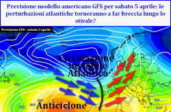 ANALISI della situazione prevista:  La situazione barica attesa sul nostro Paese durante la prima decade di aprile, presenterà standard ancora lontani da una reale stabilizzazione del tempo. L’atmosfera prenderà così le distanze da quelle che sono state le caratteristiche dominanti durante le prime due decadi marzoline. Niente super anticicloni, nessuna reale prospettiva di tempo stabile.