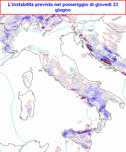 Aria calda invade gradualmente il Paese ma una goccia fredda andrà a "parcheggiare" sul meridione, attivando dalla prossima notte temporali sparsi a partire dalla Sicilia e da mercoledì anche sulle zone peninsulari e sino al basso Lazio. Giovedì e venerdì ancora instabilità al sud e su parte del Lazio e dell'Abruzzo, soleggiato e caldo altrove. Sabato e domenica aria instabile anche al nord con aumento del rischio di temporali sparsi.