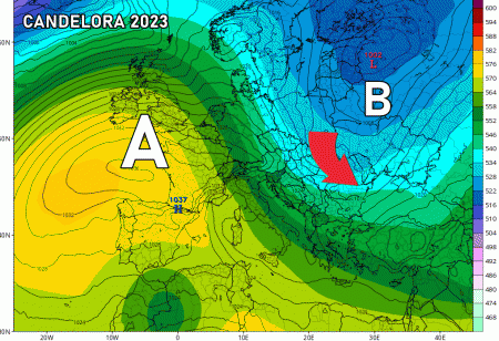 Ma torniamo a noi, cosa ci aspetterà nel giorno della Candelora? L’alta pressione si ritroverà molto addossata all’Italia, per cui con alta probabilità faremo i conti con una giornata stabile e soleggiata su gran parte del territorio. Qualche nube bassa potrebbe coprire il Sole lungo le regioni tirreniche e la Val Padana, ma senza fenomeni annessi.