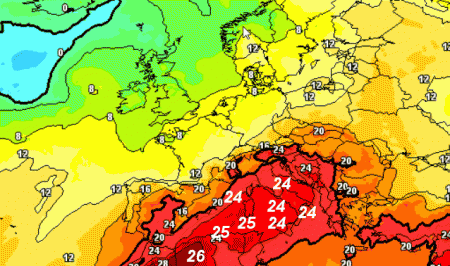 Quasi tutto il centro-sud sarà abbracciato da isoterme comprese tra + 24 e + 25°. Si tratterà di un caldo molto intenso ed opprimente su alcune regioni. La speranza è data dalla scadenza previsionale non immediata; in pratica si spera che i modelli possano ridurre la fiammata bollente.