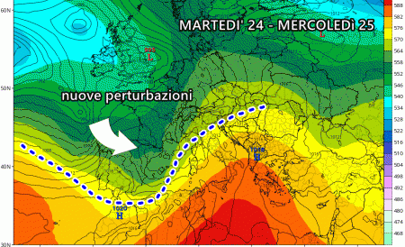 A fine mese la situazione non subirà grandi variazioni. Altre depressioni si muoveranno dall’Atlantico verso l’Europa centrale e l’Italia, con precipitazioni più concentrate al nord e sul medio-alto Tirreno.