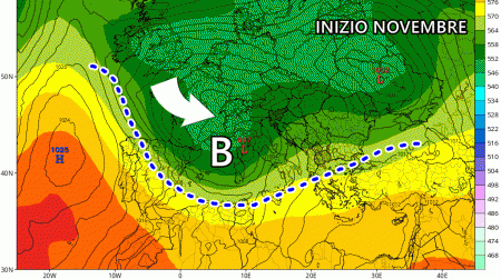 L’avvio di novembre mostrerà una situazione letteralmente bloccata, con le perturbazioni atlantiche che avranno la strada spianata verso il Mediterraneo. Le piogge saranno frequenti al nord e sul lato tirrenico, contribuendo ad accumuli davvero consistenti.