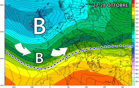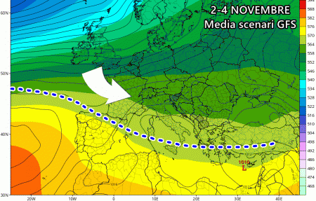 Inoltre, secondo le previsioni dei principali modelli meteorologici, sembra che questa tendenza autunnale continuerà anche nei primi giorni di novembre. L’anticiclone sembra rimanere piuttosto defilato, consentendo così l’ingresso continuo di perturbazioni da nord-ovest, ovvero dall’Atlantico settentrionale. Dopo una breve tregua il 1 novembre, come indicato sia dal modello europeo ECMWF che dal modello americano GFS, aumentano le probabilità di un nuovo afflusso di aria fresca dall’Atlantico settentrionale verso l’Italia tra il 2 e il 4 novembre.