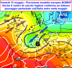 L’occhio clinico dei modelli, mette in evidenza un calo deciso dei geopotenziali in area mediterranea, la strutturazione di una circolazione ciclonica ben rappresentata da un vistoso minimo al suolo che nella giornata di venerdì 15, porrebbe il proprio perno sulle regioni settentrionali italiane (Mar Ligure), influenzando il tempo di tutto il Paese. A seguire l’apporto d’aria fredda di estrazione settentrionale europea, sarebbe piuttosto vigoroso, portando ad un drastico ribasso della colonnina di mercurio su tutto il Paese, nonchè su una buona fetta d’Europa.