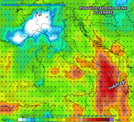 L’area più a rischio potrebbe essere quella ionica, specie il Salento. Sia il modello americano GFS che l’inglese ECMWF concordano su una persistenza di piogge di moderata-forte entità tra sabato 26 e mercoledì 30, con pochissime soste anche tra una perturbazione e l’altra. Difatti gli accumuli totali previsti entro il termine di novembre sono decisamente elevati, anche superiori ai 200 mm tra brindisino e leccese. Anche la Calabria ionica potrebbe fare i conti con piogge diffuse e intense nello stesso arco di tempo.