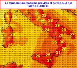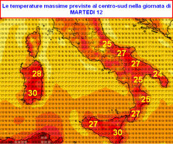 CALDO ANOMALO: i picchi termici di martedi e mercoledi al sud…
