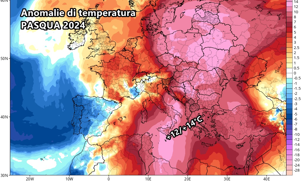 Si tratta di temperature eccezionalmente alte per il periodo, come si evince anche dalle anomalie di temperatura previste addirittura superiori ai 12 o 13°C rispetto alle medie sul meridione.