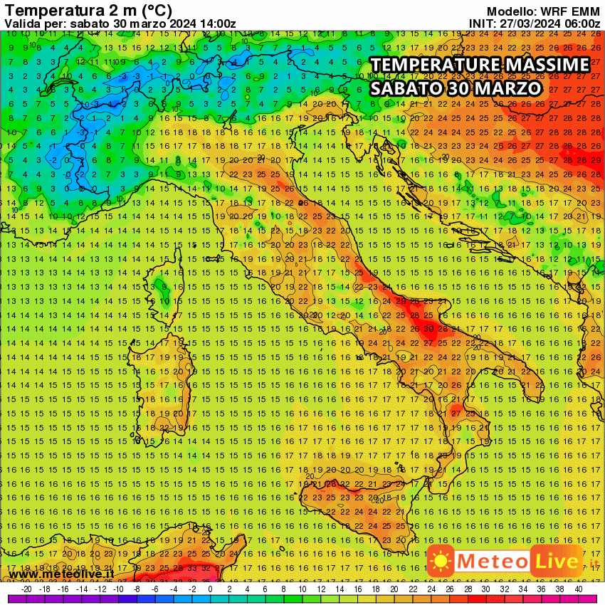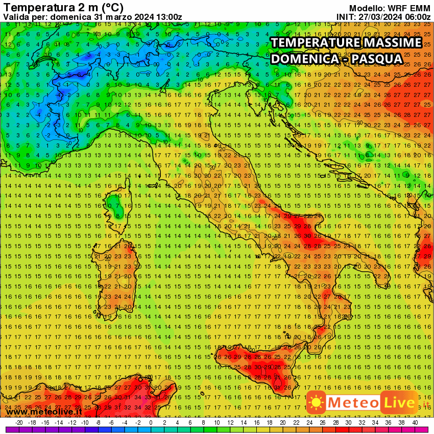 La giornata più calda sarà proprio quella di Pasqua, quando su tutto il meridione raggiungeremo temperature vicine ai 25-26°C con punte di 32°C nelle zone interne della Sicilia, fino a 30-31°C nel foggiano nelle zone interne della Calabria.