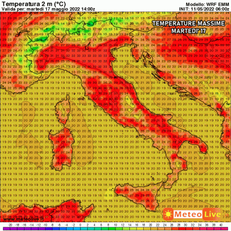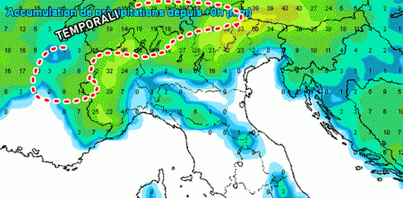 Questa instabilità sarà accentuata fortemente dal gran caldo che si accumulerà in pianura Padana, favorendo la formazione di rovesci e temporali.
