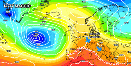 Ma avremo a che fare solo con caldo e bel tempo? Assolutamente no! Tra il week-end e i primi giorni della prossima settimana, ovvero tra il 14 e il 17 maggio, l’alta pressione si indebolirà leggermente alle alte quote favorendo l’ingresso di aria più secca e instabile.