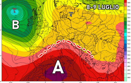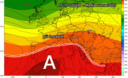 Fortunatamente ci sono delle novità: già si intravede la fine di questa sfuriata sub-tropicale! A ridosso di metà Luglio l’anticiclone potrebbe pian piano arretrare grazie ad incursioni più fresche atlantiche, ovviamente ricche di temporali.
