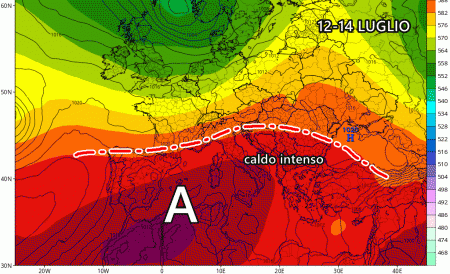 Ma l’apice del caldo arriverà nei giorni successivi, in particolare tra 10 e 14 Luglio! L’anticiclone sub-tropicale porterà i suoi massimi geopotenziali proprio sul centro-sud, innescando un aumento termico clamoroso a tutte le quote. Questa ipotesi è paventata principalmente dal modello americano GFS, che pone questa seconda ondata di caldo estiva come una delle più forti degli ultimi anni.
