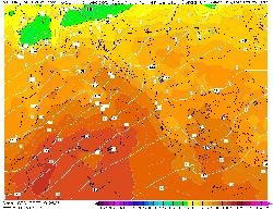 L’afflusso si aria calda sub-tropicale in atto, con valori termici fino a 14-15 gradi ad 850 hpa (circa 1500 metri di quota)
