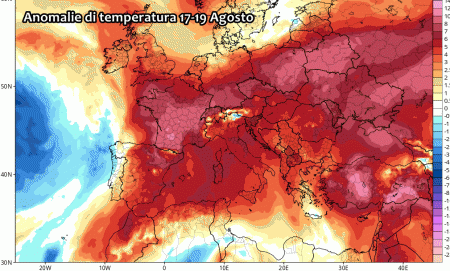 Le anomalie previste tra 17 e 19 Agosto parlano chiaro: tutta Italia si ritroverà in un contesto più caldo del solito, così come gran parte dell’Europa, segno del rinforzo dell’anticiclone africano su gran parte del Vecchio Continente.