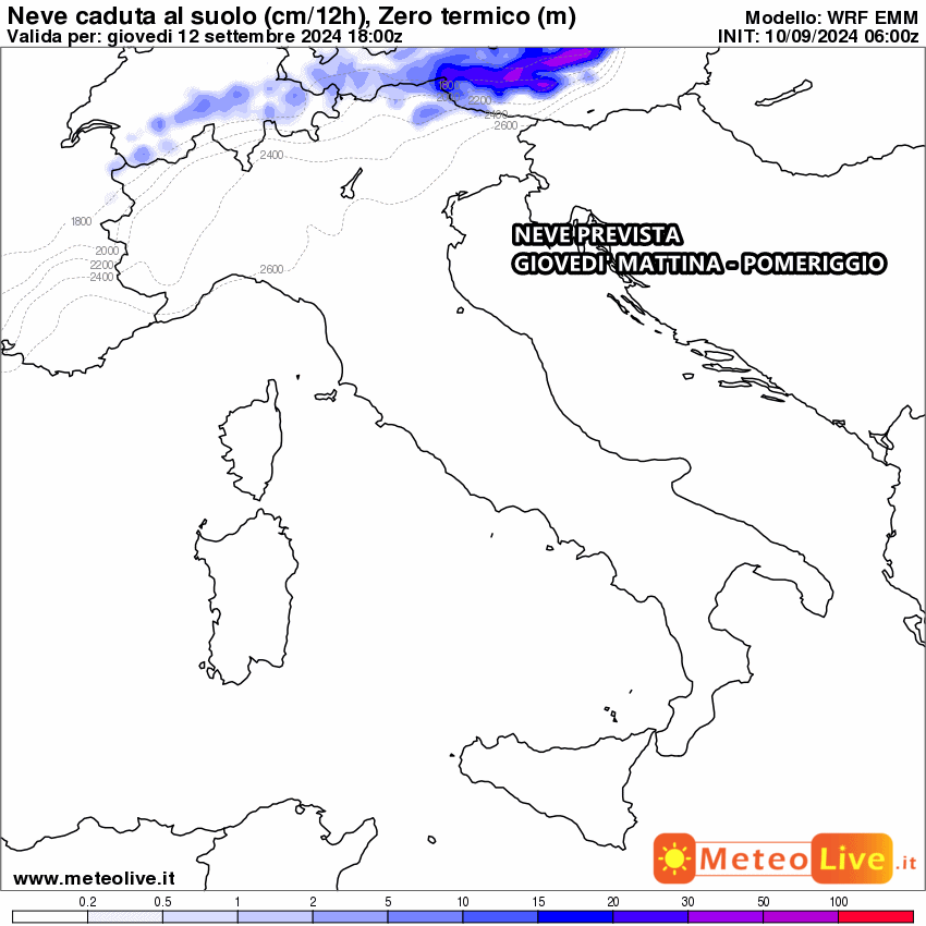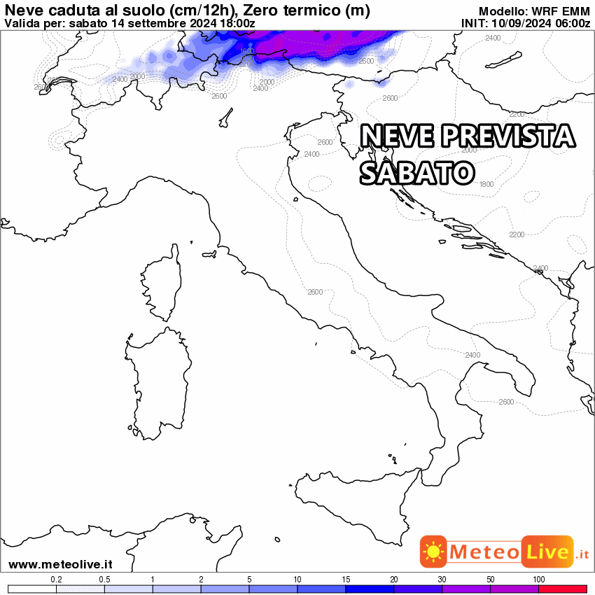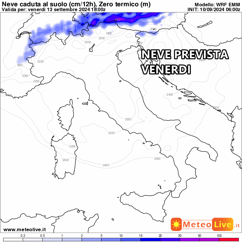Ciò significa che la neve potrebbe spingersi agevolmente fino a 1500 metri, anche con accumulo. Le Alpi di confine saranno senz’altro favorite sin dalle prime battute dell’ondata di maltempo. Addirittura si prevedono fiocchi a ridosso dei 1000 metri!