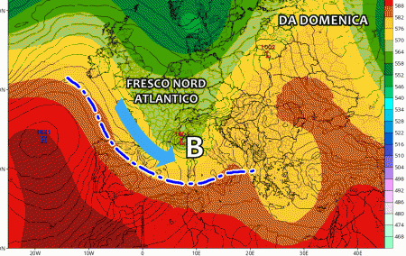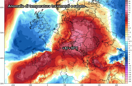 Infatti, la posizione occidentale dell’Anticiclone rispetto alla nostra penisola esporrà le regioni del centro e del Nord alle temperature più alte e al caldo più intenso. Tra domenica e lunedì, le temperature subiranno un rapido calo, situandosi di qualche grado al di sotto delle medie stagionali.
