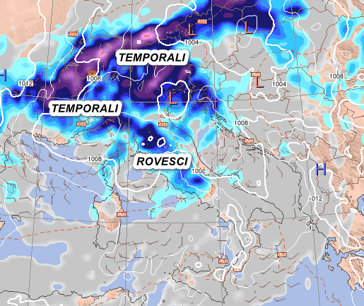 Si conferma l'arrivo di un'intensa perturbazione temporalesca che domenica metterà sotto torchio diversi settori dell'Italia settentrionale. Il meridione invece si prepara ad una fase di caldo molto intenso.
