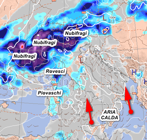 Ecco i temporali intensi ed i nubifragi che interesseranno la bassa Val d’Aosta, l’alto Piemonte, gran parte della Lombardia e il Triveneto. Sul resto del nord e sulle regioni centrali tirreniche arriveranno rovesci sparsi soprattutto tra Liguria e basso Piemonte, ma in intensificazione verso sera. Cieli invece velati-lattiginosi al sud con consistente aumento delle temperature.