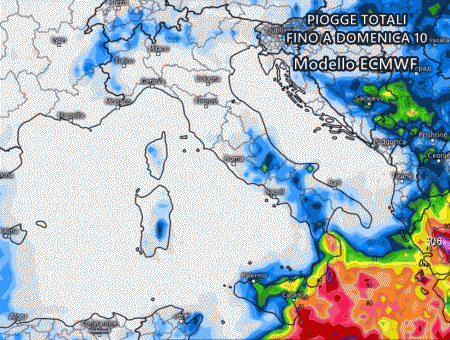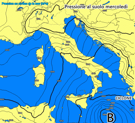 Nonostante ciò, si attendono piogge, temporali isolati e nubifragi nelle aree più esposte, come i versanti ionici di Calabria e Sicilia. Le piogge più abbondanti si verificheranno tra mercoledì e sabato, poiché il ciclone dovrebbe permanere per più giorni consecutivi al largo di Calabria e Sicilia.