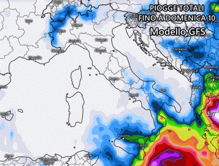 Anche il modello americano GFS concorda, prevedendo quantità di pioggia inferiori, ma comunque significative sui versanti ionici dell’estremo sud. Alcune piogge sparse potrebbero interessare anche Basilicata, Campania e Puglia, ma saranno molto meno intense rispetto a quelle attese nell’estremo meridione:
