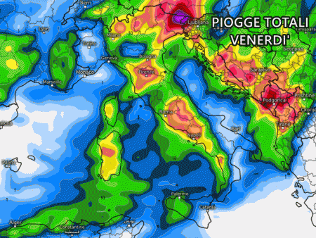 Venerdì 3 novembre il maltempo si diffonderà su tutto il nord-est, la Liguria orientale e la Toscana, così come su gran parte delle regioni centrali, e le piogge entro sera si estenderanno anche sul meridione, ma in maniera più consistente sul versante tirrenico.
