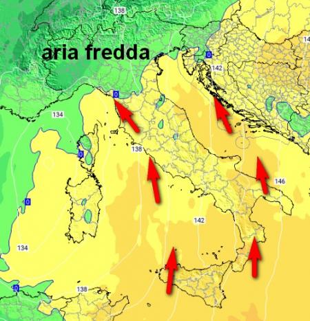 Depressione in azione sulla Penisola e ancora cuscino di aria fredda tenace sul settentrione.