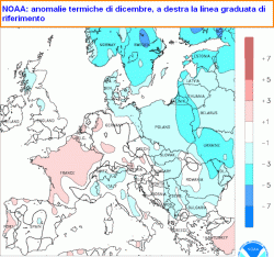 Secondo i dati elaborati dall’Istituto di Climatologia americano NOAA, in Italia il mese di dicembre 2012 (meteorologicamente già invernale)  ha fatto registrare temperature perfettamente in linea con la media del periodo (mappa qui a fianco). In linea anche i quantitativi di precipitazioni, con un leggero deficit in Sardegna e sulle Venezie.