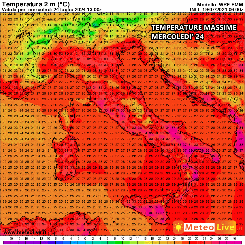 Anche mercoledì 24 Luglio il caldo non mancherà, con punte massime anche di 37-38°C al sud Italia. Caldo afoso al nord e le coste adriatiche centro-settentrionali: