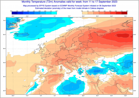 Il prestigioso centro di calcolo ECMWF ha elaborato le mappe fino al termine di settembre, ovvero per le restanti due decadi.