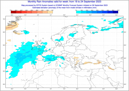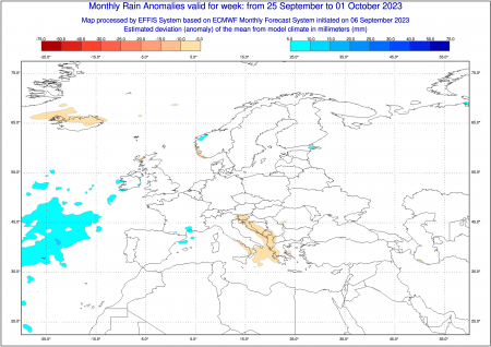 Infine, queste sono le anomalie precipitative previste per il periodo compreso tra il 25 settembre e il 1 ottobre: