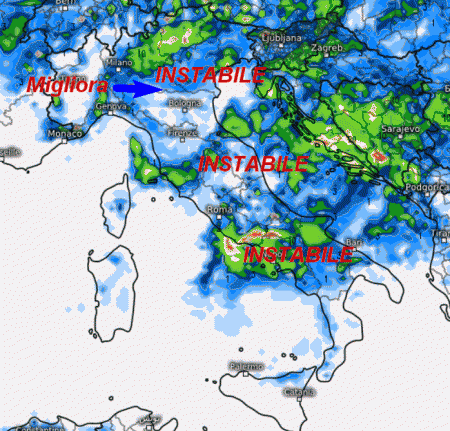 Sul nord-ovest tempo in miglioramento dopo gli ultimi fenomeni al mattino tra la Lombardia e a Liguria. Tempo instabile al nord-est e sul centro-sud peninsulare ad eccezione delle aree estreme. Qui avremo il rischio di temporali alternati a pause asciutte. Saltate completamente da questo passaggio la Sardegna e la Sicilia, dove il tempo sarà buono, ma avremo un rinforzo della ventilazione da nord-ovest. Temperature in calo su tutto il Paese.