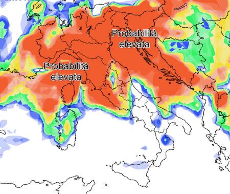 La previsione sulla probabilità della pioggia calcolata dal modello americano per martedì 23 aprile, mette in luce il passaggio di un primo corpo nuvoloso organizzato sulle regioni centrali e settentrionali. Sarà l’inizio di una fase prolungata di instabilità che, seppur a fasi alterne, potrebbe interessarci sino al termine del mese: