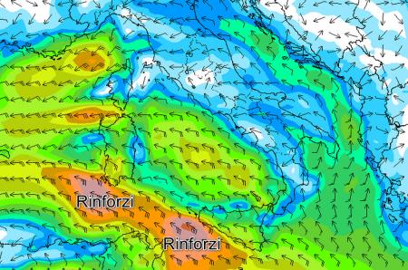 Una circolazione di bassa pressione interessa ormai da alcuni giorni il mare di Alboran, la Spagna ed il Portogallo, dove negli ultimi due giorni sono stati segnalati diversi temporali accompagnati da forti precipitazioni con accumuli di pioggia superiori ai 100mm in meno di 24 ore. Questa circolazione di bassa pressione porterà con sè un cambiamento del tempo anche sul nostro Paese. La depressione richiama a sè venti caldi di Scirocco previsti in rinforzo già dalla prossima notte sul Canale di Sicilia e sul Canale di Sardegna. La previsione del modello americano sull’intensità del vento al suolo prevista nelle ore centrali di domani, domenica 21, mette in luce il rinforzo dello Scirocco sui bacini meridionali: