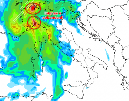 Stima delle piogge previste dal modello americano sempre per la mattinata di lunedì: